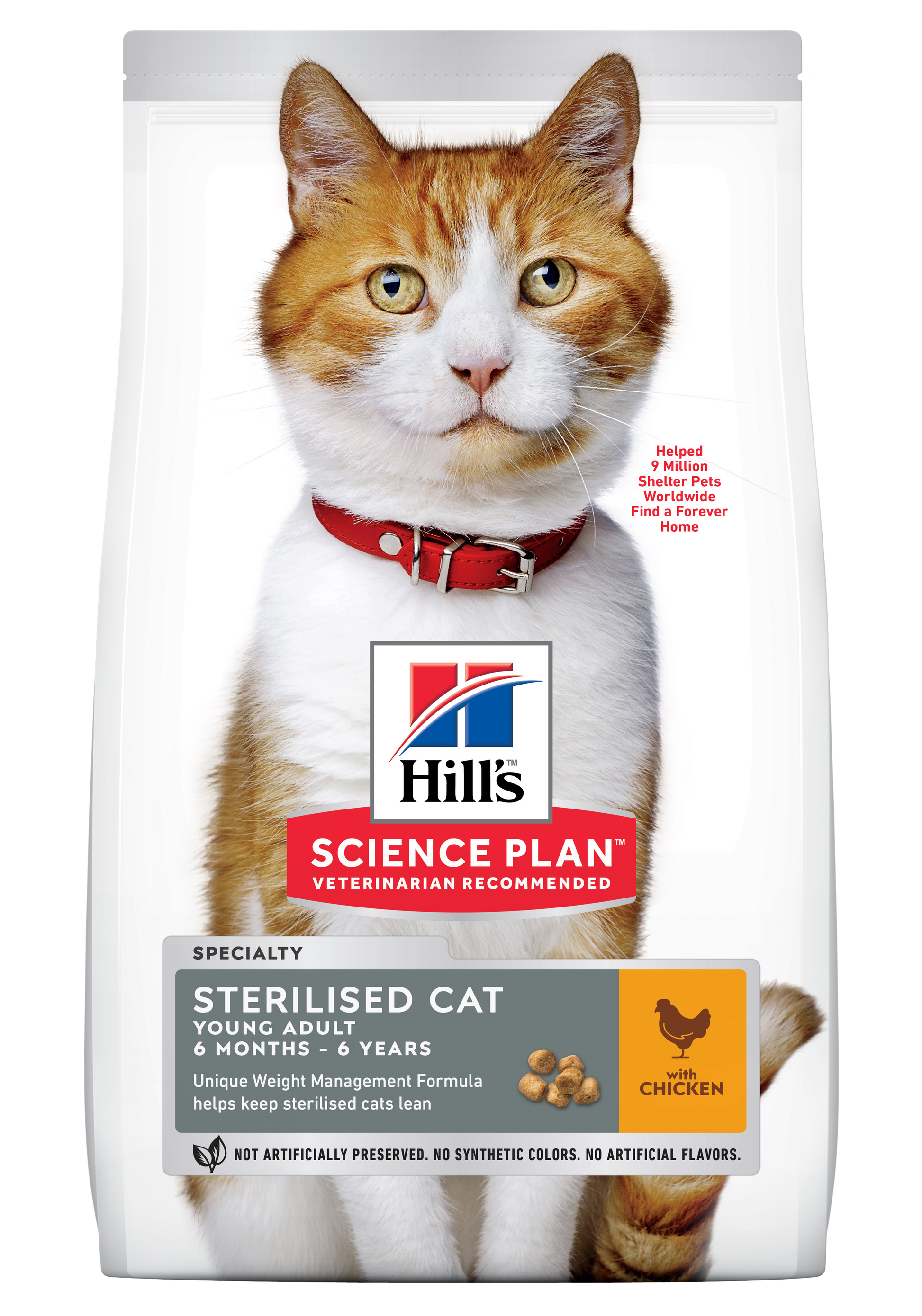 Sterilised Cat Young Adult dry cat food has a unique Weight Management Formula to help keen sterilised cats lean. Made with high quality, easy-to-digest ingredients.With added L-carnitine clinically proven to help cats stay lean & active/li.Controlled levels of minerals for a healthy urinary system.Low fat content, and high levels of L-lysine, to help maintain vitality
