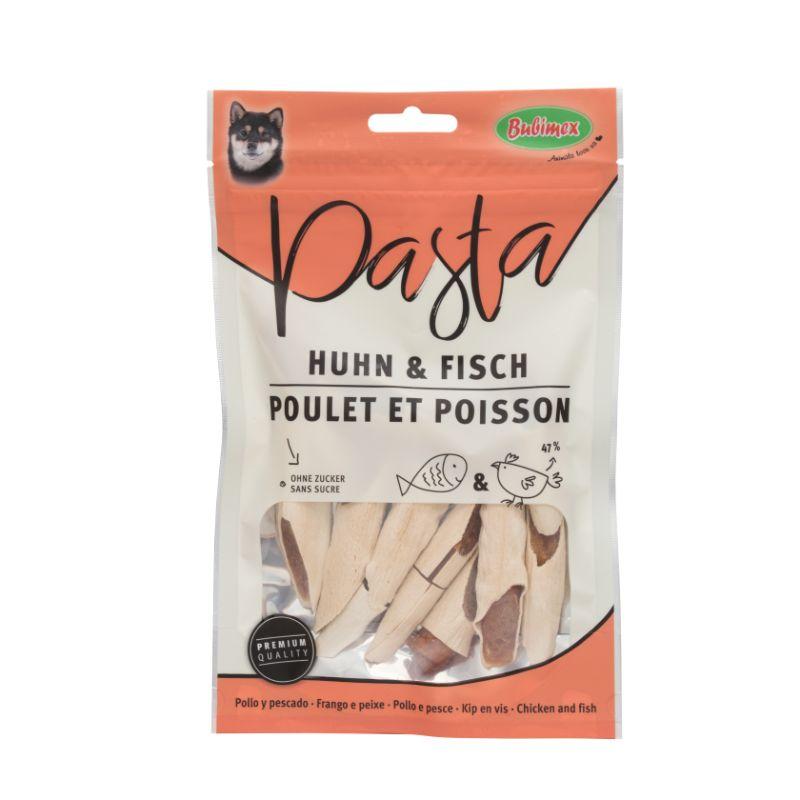 A special treat for your dog: BUBIMEX Chicken Pasta made with high quality meat and fish. Your dog will love this snack.