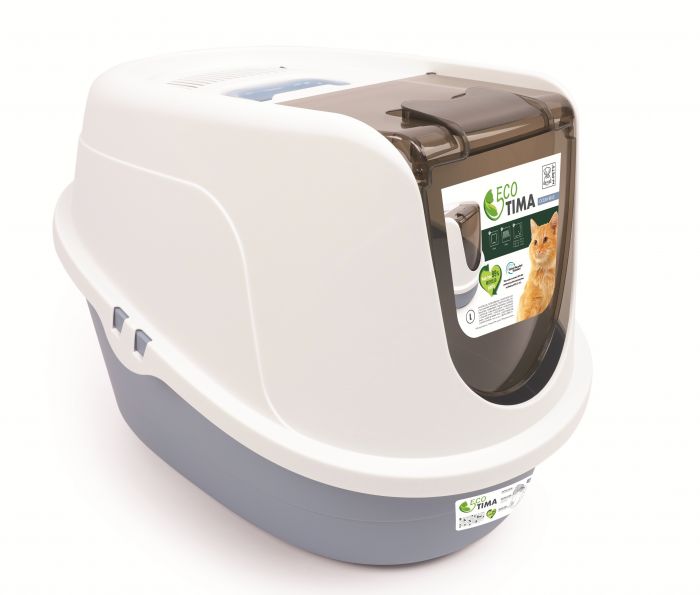 Made from GRS certified recycled plastic, ECO TIMA provides all the comfort and tidiness of a sturdy plastic cat litter box, without harming the environment. The ECO TIMA range is available in three natural colours: Ocean Blue, Desert Sand and Sea Green. So you can choose the perfect one to match your personality and interior. Our modern design includes a swinging door for easy access. When it’s time to clean the box, simply remove the top part and replace the cat litter inside. Each ECO TIMA comes with a filter included, to ensure that your home stays fresh and odour-free. * ECO-friednly, made from recycled plastic * Removable Secure Cover * Plastic swinging door provides easy in/out access for your cat; hood lifts off for easy cleaning top handle for comfortable carrying * Filter included to remove the odours