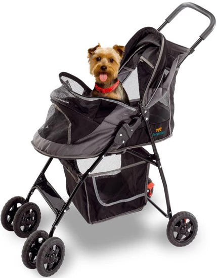 Με αυτό το καρότσι σκύλου η γκάμα των ταξιδιωτικών προϊόντων διευρύνεται περαιτέρω, προτείνοντας ένα αξιόπιστο και ανθεκτικό προϊόν, ιδανικό για ζώα βάρους έως 9 κιλά. Είναι εξοπλισμένα με μια μικρή ηλιοροφή για να προστατεύουν τον φίλο σας από το κρύο και τη βροχή, εύκολα αναδιπλώνονται και κλείνουν για μεταφορά στο χώρο αποσκευών του αυτοκινήτου σας. Το φως του ήλιου έχει μικρή πρόσβαση στο εσωτερικό χωρίς να είναι ενοχλητικό, μπορεί να χρησιμοποιηθεί ως καρότσι για παιδιά. Είναι εξοπλισμένο με θήκες και ένα πολύ χρήσιμο, μικρό καλάθι στο κάτω μέρος για αντικείμενα, καθώς και ζάντες με κλειδαριά φρένων. Το μπροστινό μέρος μπορεί εύκολα να ανοίξει για να πυροβολήσει το σκυλάκι σας, Η ηλιοροφή έχει ανύψωση πάνω και κάτω, όπως θέλετε.