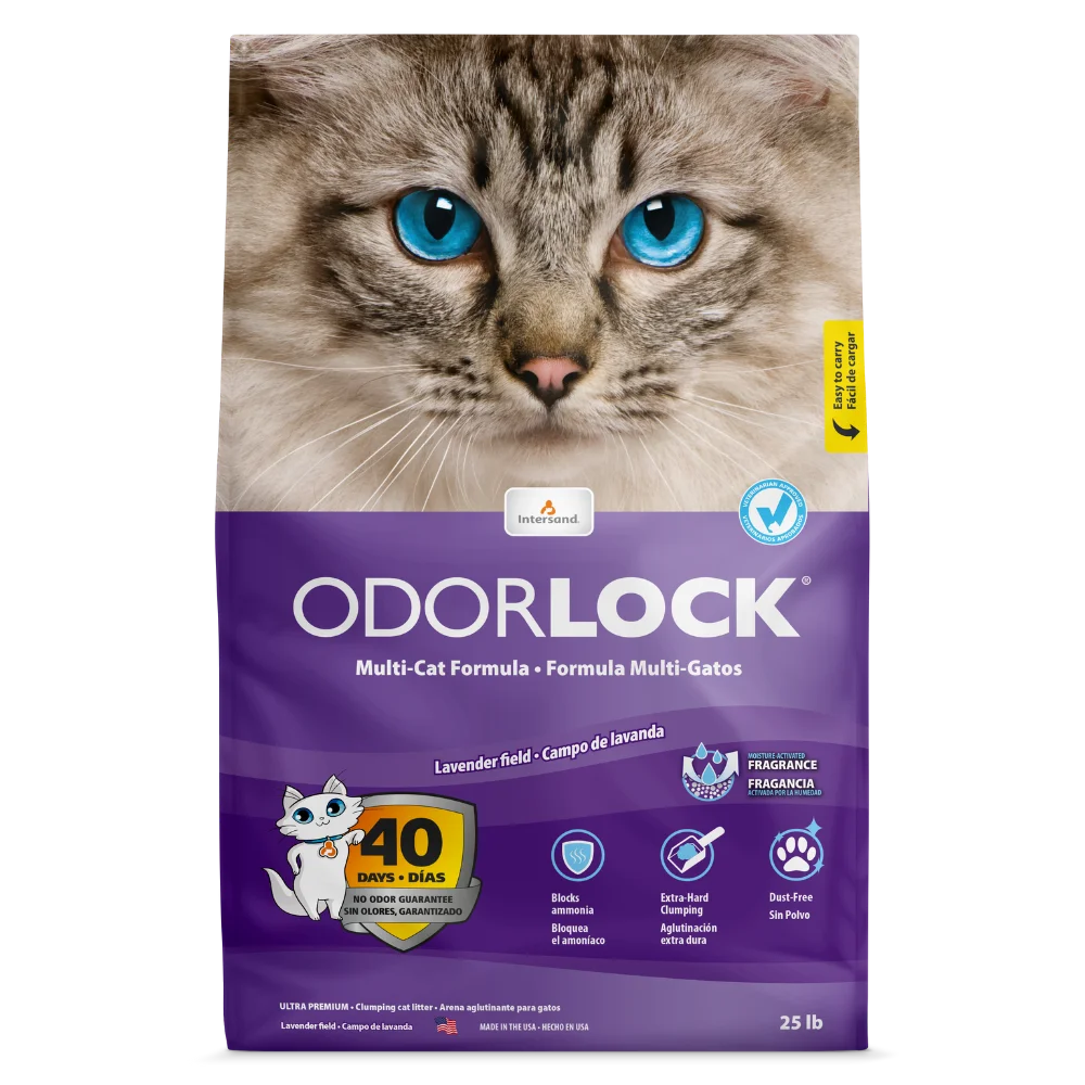 Thanks to its unique technology, our OdorLock® litter neutralizes ammonia formation for unrivaled control of urine and feces. Ammonia is formed in the litter tray when urine comes into contact with oxygen and bacteria develop, creating an unpleasant odor. OdorLock® technology activates on contact with urine to neutralize odours for over 40* days.